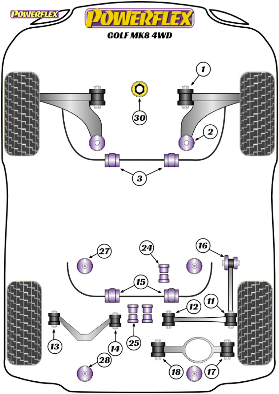 Powerflex Track Rear Subframe Rear Mounting Bush - Golf Mk8 4wd